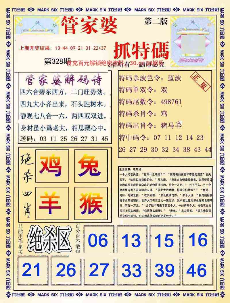 333期:密门仙机/心水特码信/黄大仙天书/波色生肖诗/生肖歇后语