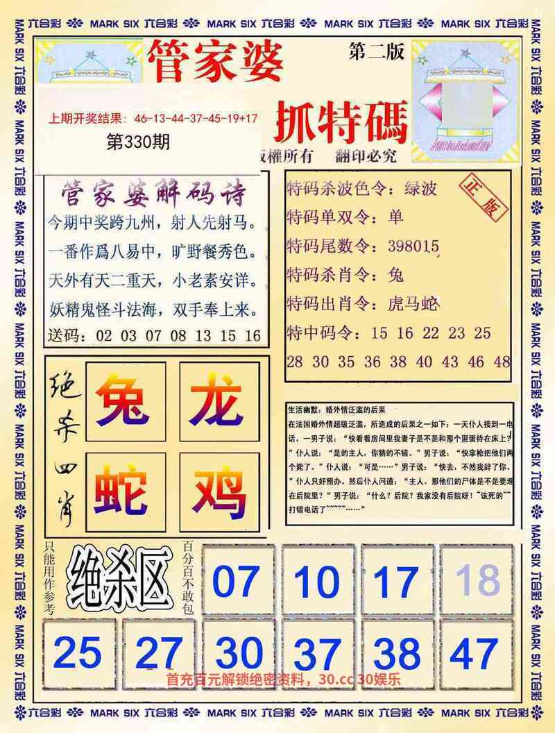 333期:必中天机/特七决/正版欲钱料/特码生肖诗/澳门天机诗