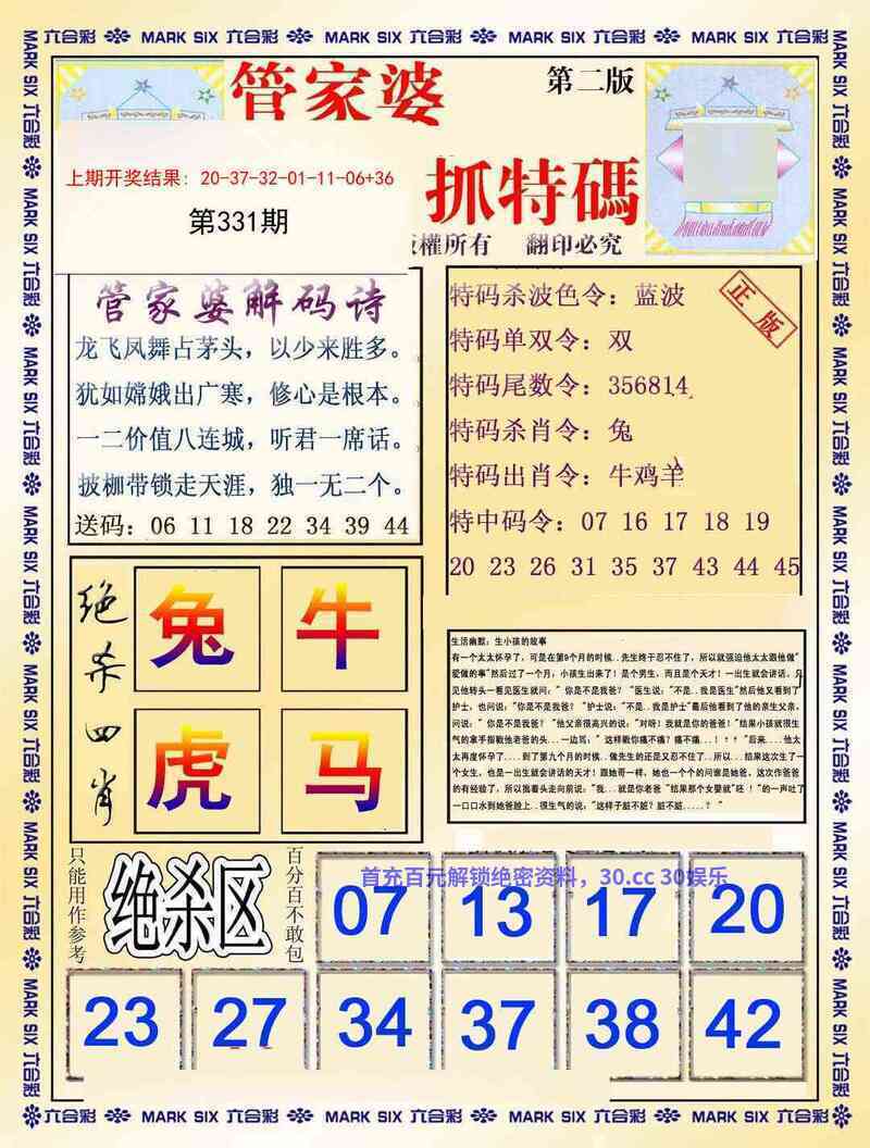 333期:特码暗语/曾道人救世心经/攻特料/六合心经/平码生肖点将