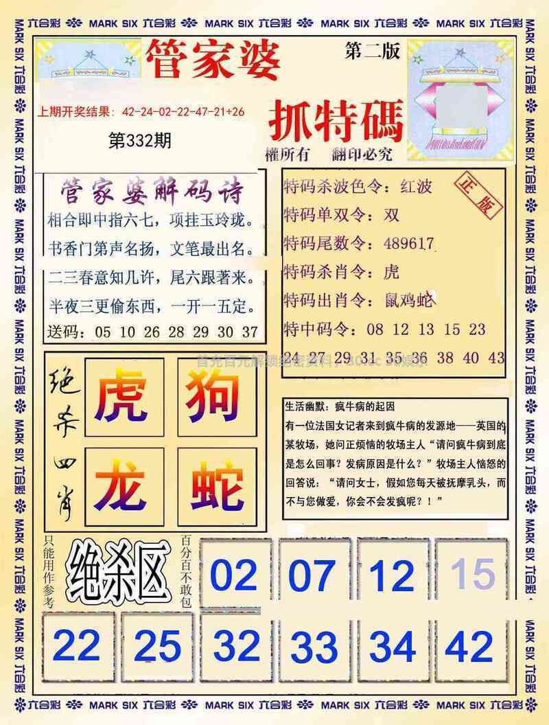 333期:中特两句经/管家婆玄机/龙仔凑热闹/彩霸王出肖料/狗不理